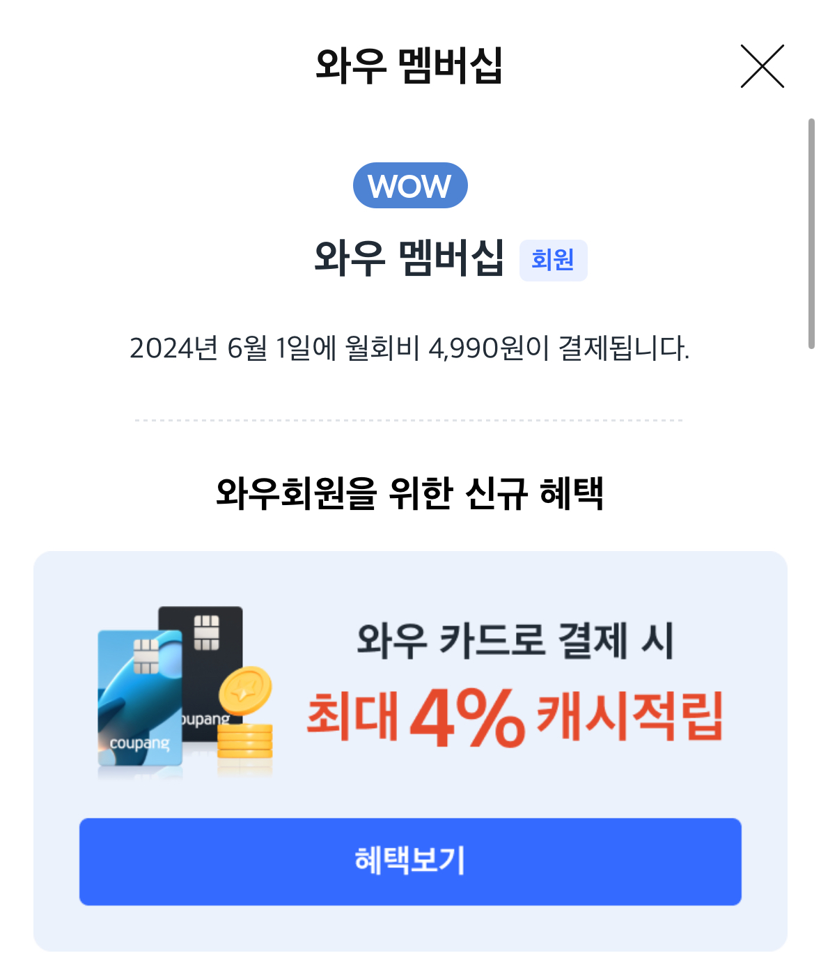 요금이 변동됨에 따라서 오른 요금을 내고 싶지 않은 분들이 쿠팡 로켓와우 멤버십을 해지 방법을 많이 찾고 계신 것 같습니다.